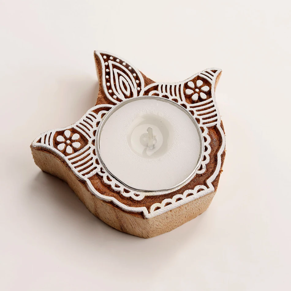 2 × Wooden Tea Light Diyas - Elegant festive décor