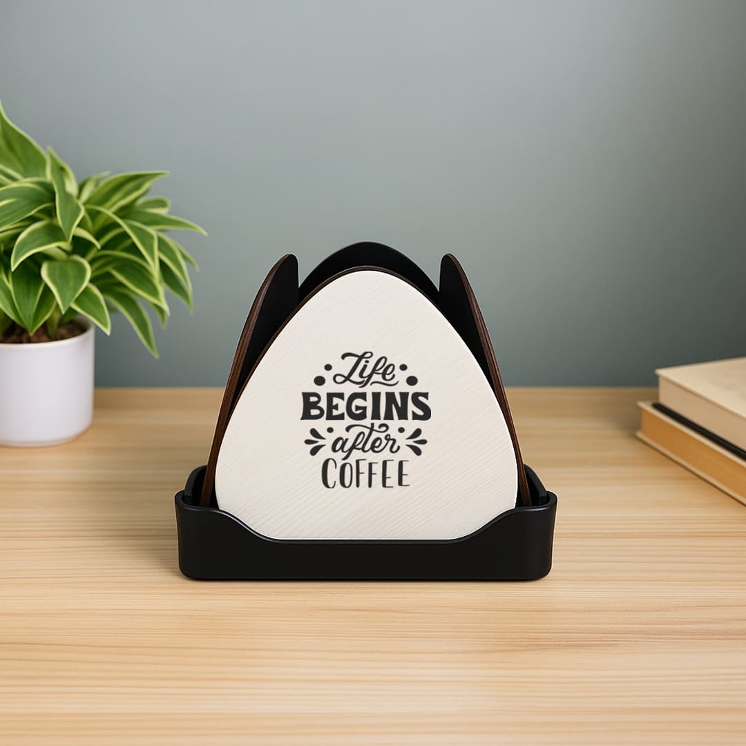Bring elegance and charm to your desk or dining table with the Giftana Lotus Coaster Set. with Engraved Tea & Coffee Quotes. Designed in a unique lotus petal shape, this set includes 4 premium coasters - 2 engraved with coffee quotes and 2 engraved with tea quotes - making it a delightful accessory for every beverage lover.Birthday Gifts