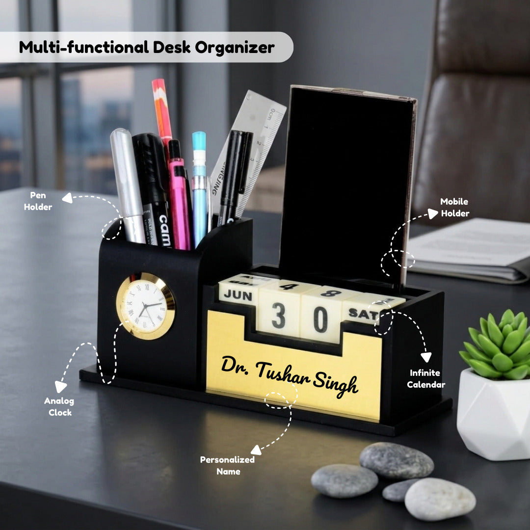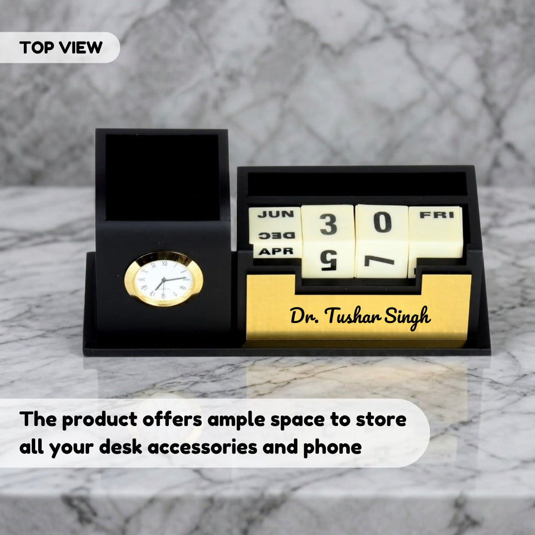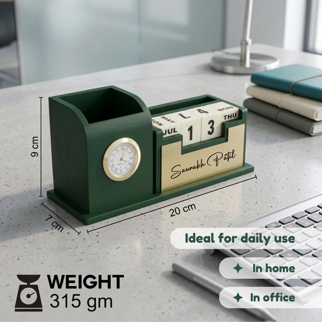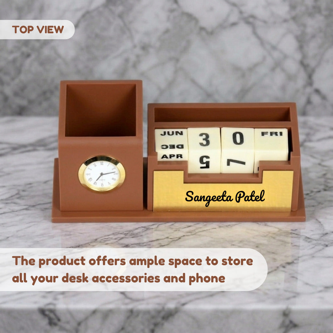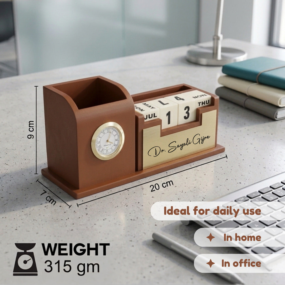 | Product Name | Personalized Desk Organizer with Inbuilt Clock and Day-Date Calendar |