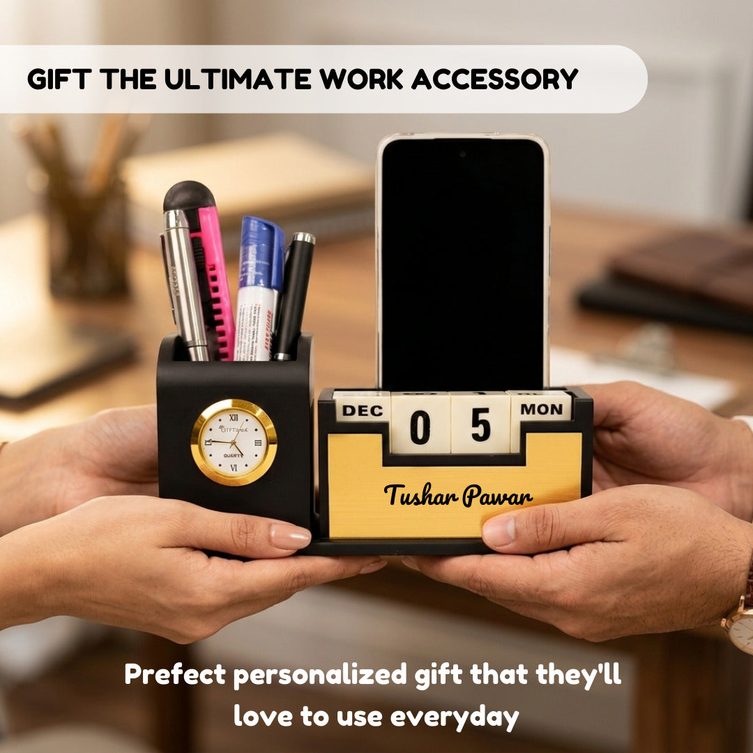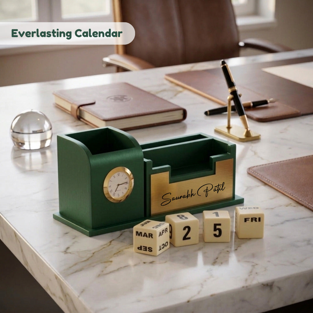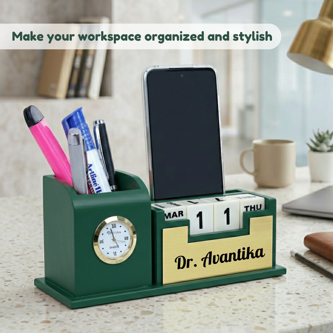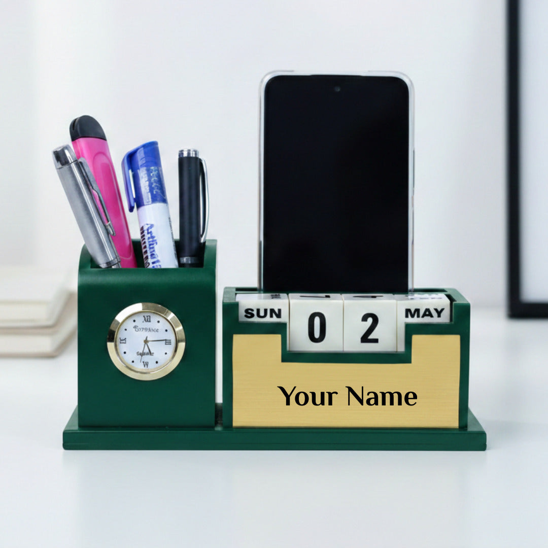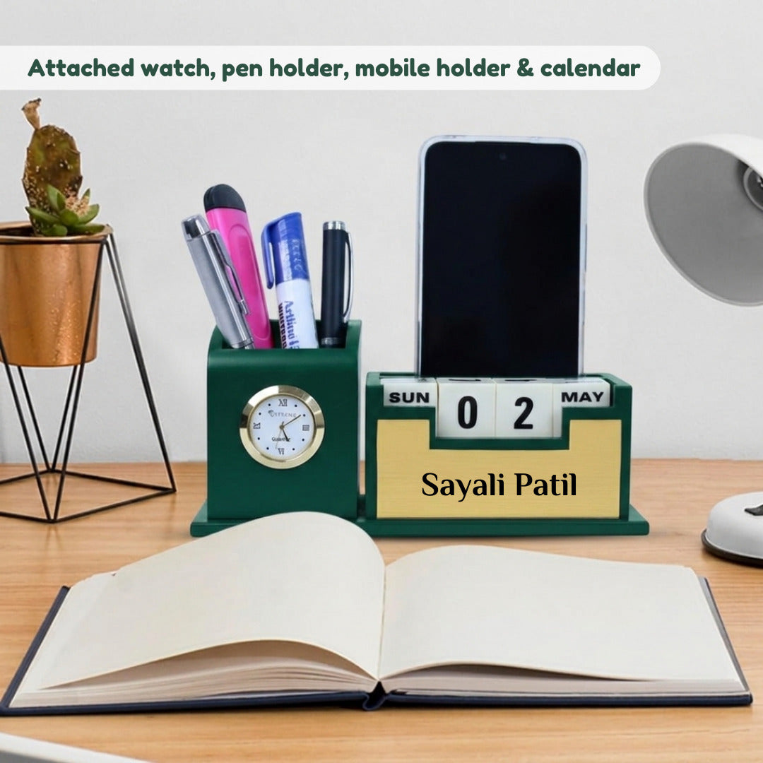 | Product Name | Personalized Desk Organizer with Inbuilt Clock and Day-Date Calendar |